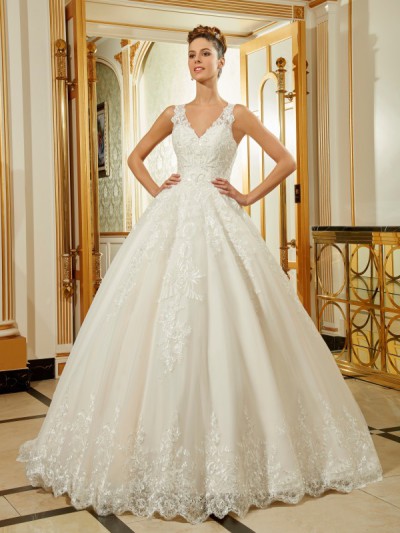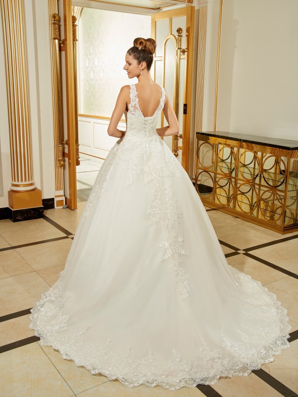 Robe de mariée princesse en tulle et guipûres de dentelle